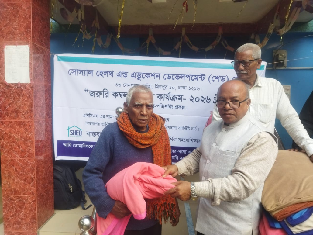 Winter in Bangladesh can be harsh, especially for vulnerable communities who struggle to protect themselves from the cold. On 16th January 2026, with the generous support of BMS UK, SHED Board successfully distributed winter blankets among cold-affected and vulnerable people across four major regions of the country — Rangpur, Chattagram & Hill Tracts, Khulna, and Srimangol.